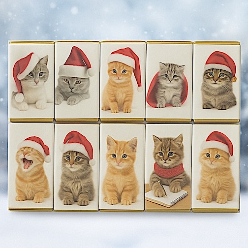 HOLIDAY GIFTS (Order Now) > Holiday Cats Wrapping Chocolate Bites