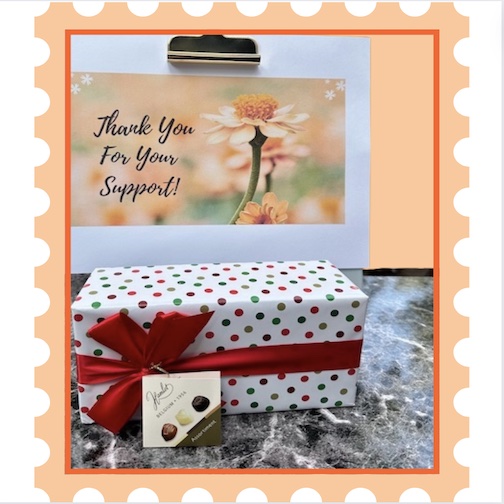 It's a kind and beautiful way to send a delicious box of tasty Belgium Chocolates expressing in a 10 word Telegram a Thank You for all her support!